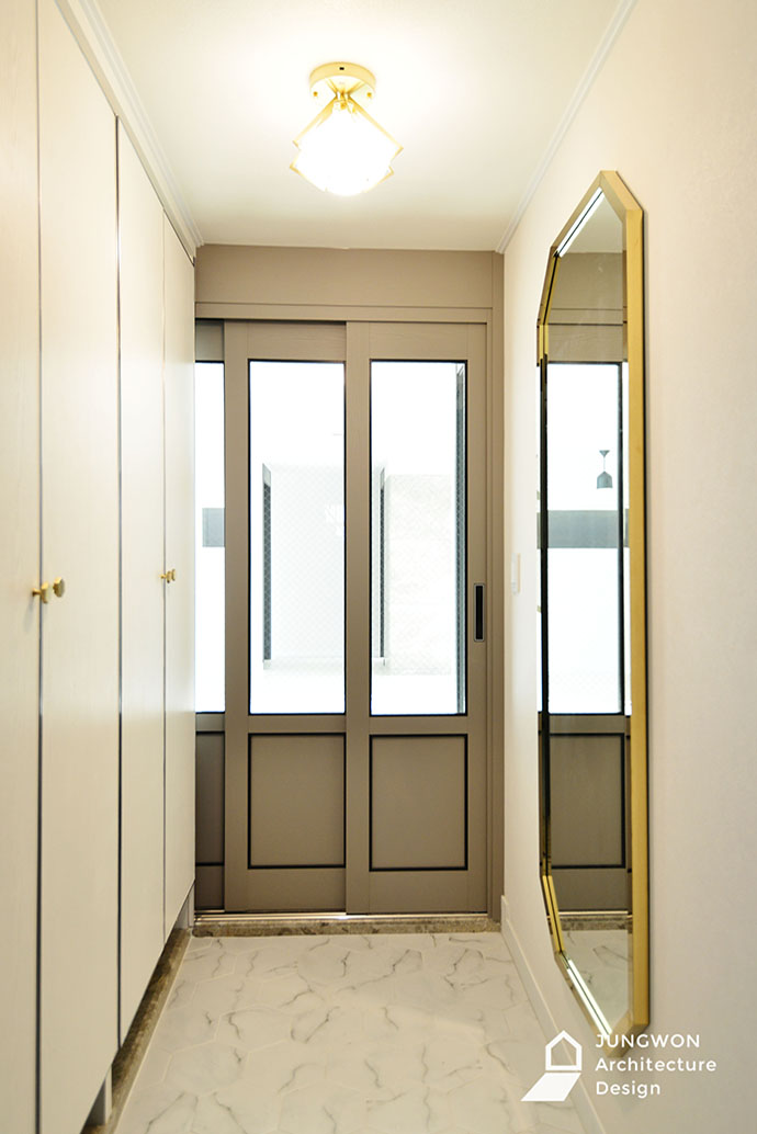 : 목공사, 욕실공사, 폴딩도어, 타일공사, 전체필름, 도배, 장판, 조명, 중문, 싱크대 및 가구