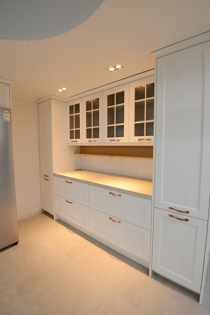 평형 : 48py 위치 : 수성구 태왕리버뷰 작업내용 : 시스템 에어컨 설치(거실1/방4)총5대, 전체인테리어필름, 방문교체 및 중문, 슬라이딩도어, 욕실공사(한샘바스), 목공사, 욕실공사, 거실포쉐린타일 공사, 마루, 도배, 칠, 씽크대 및 가구제작, LED조명 교체