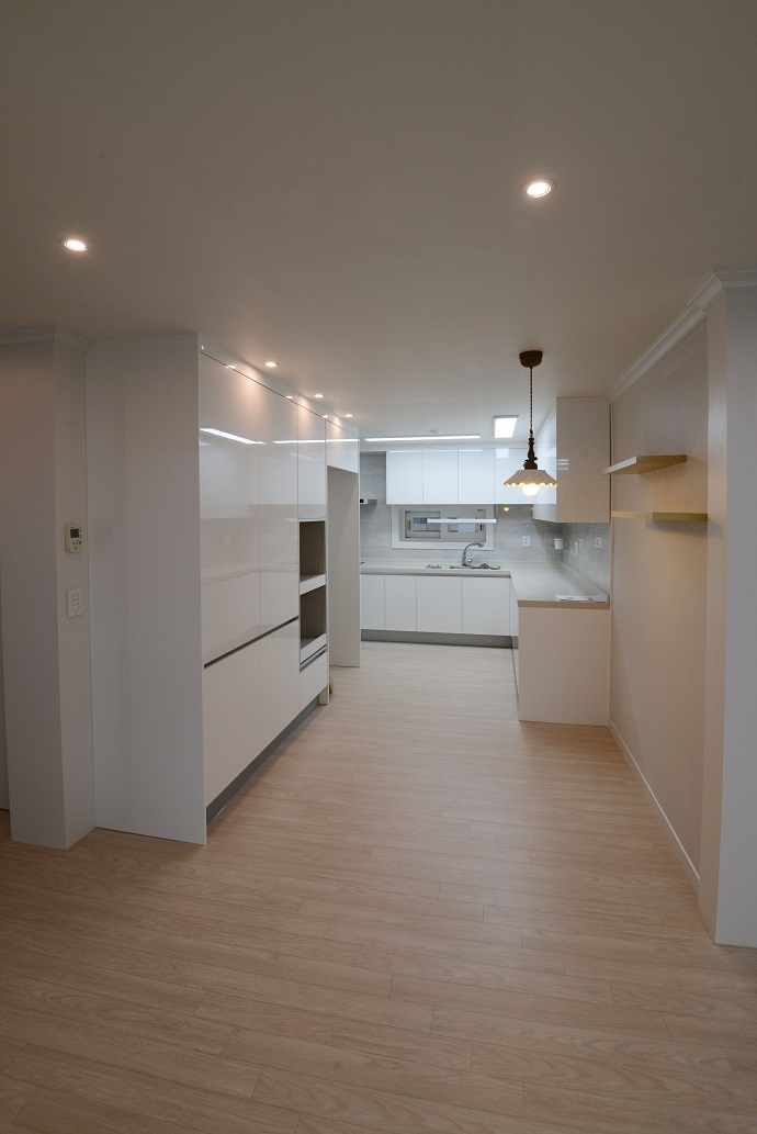 평형 : 33PY 위치 : 대구 수성구 범어동 작업내용 : 한샘싱크대, 한샘강마루, 중문시공, 욕실공사, 조명공사, 전체도배, 방문교체, 거실&방 확장, 동파이프 보일러배관교체, 샤시교체, 단열작업, 방 문틀&문선 교체, 타일공사, 창고 및 다용도장 설치, 몰딩&걸레받이 교체