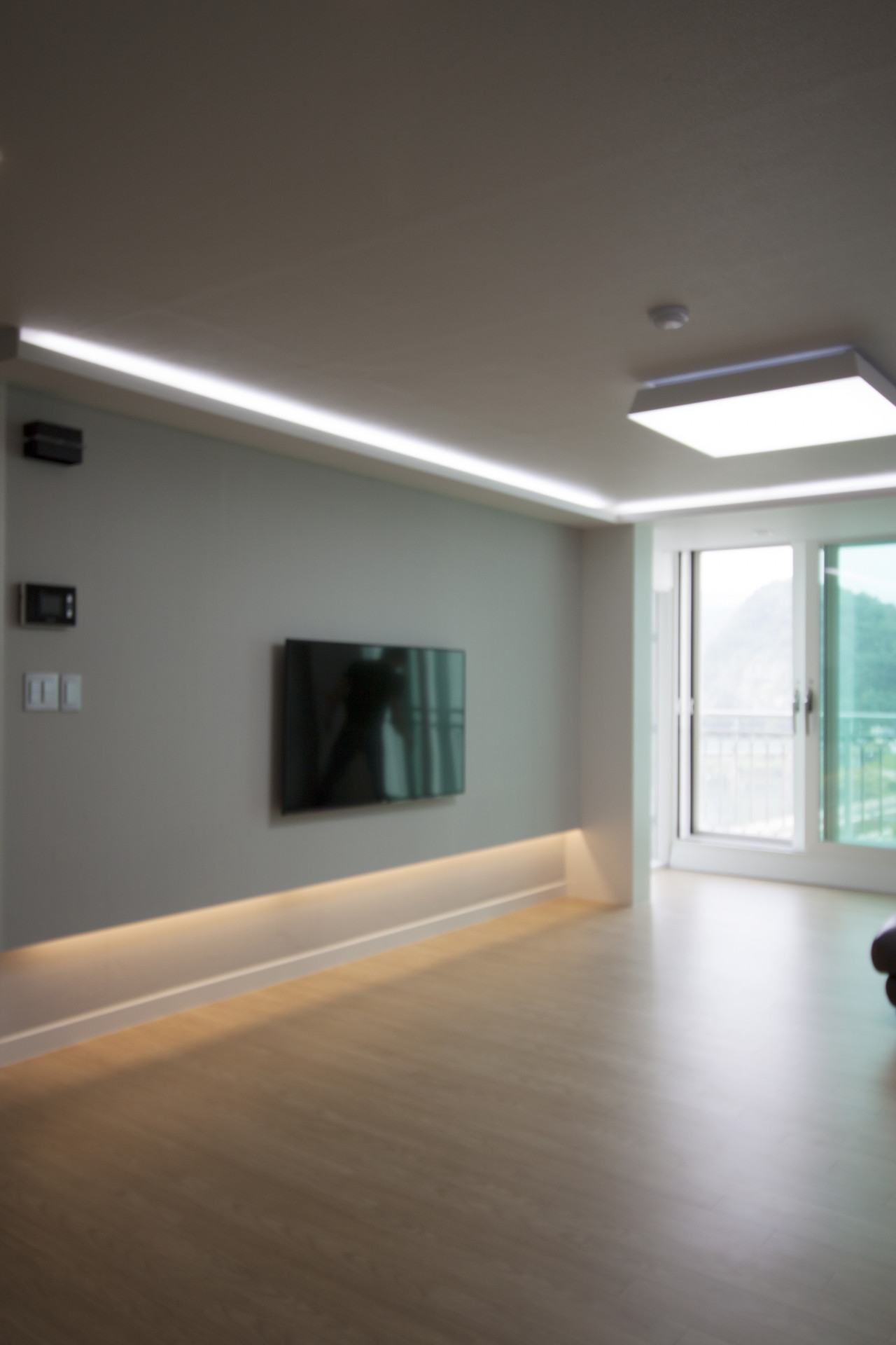 평형 : 32PY 위치 : 경남 밀양시 삼문동 작업내용 : 거실확장공사, 전체샤시교체, 한샘강마루, 목공사, 고급실크도배, 한샘도어교체, 욕실공사 및 타일공사, 한샘싱크대, 한샘붙박이장, 다용도 장 등 가구공사, LED조명(바리솔)
